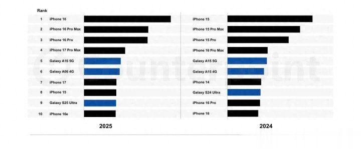 2025 年全球智能手机销量榜单:苹果三星连续四年包揽前十 旗舰机型占比将持续提升